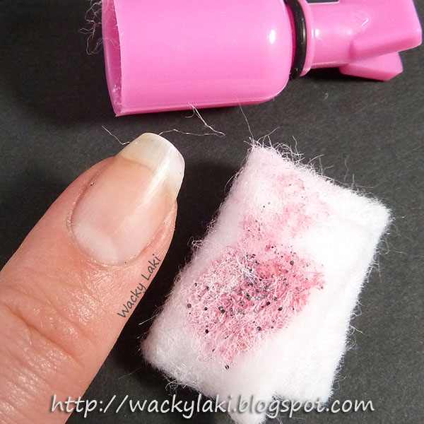 Although I was worried about them not providing enough pressure, that didn't seem to affect the outcome. After a few minutes, the glitter easily wiped off the nail. No more rubbing...